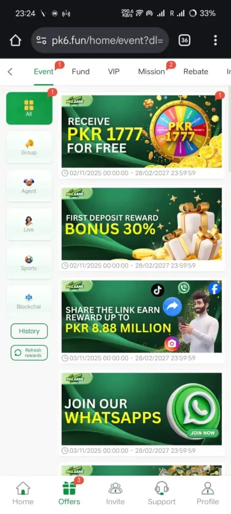 Firstly, PK6 Game rewards users with referral bonuses when friends sign up.