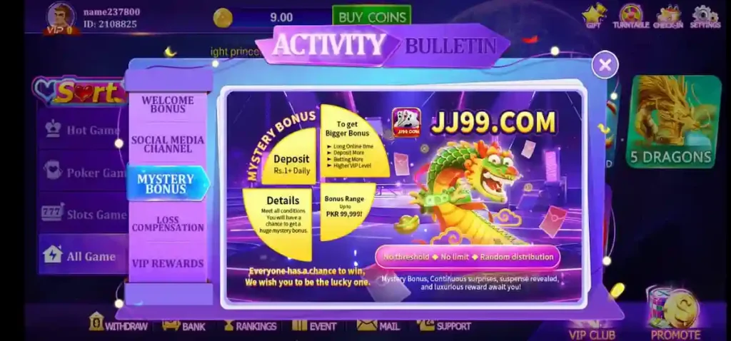 To keep the gaming experience exciting, JJ99 Game offers various bonuses, including daily login rewards, event-based bonuses, and mystery rewards. These incentives encourage players to stay active and engaged on the platform.