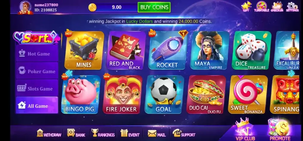 The platform boasts a wide range of games, including Poker, Teen Patti, Rummy, Baccarat, Slots, and more. Each game offers unique gameplay mechanics and rewards, ensuring players remain engaged and entertained.